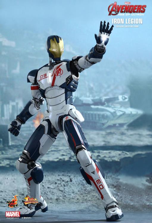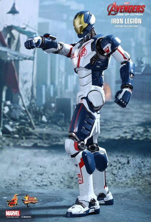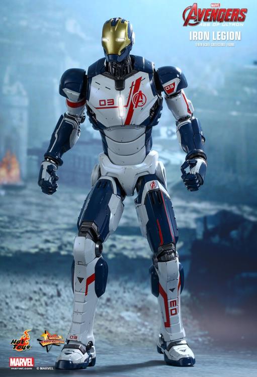 Hot Toys is pleased to officially introduce today the 1/6th scale Iron Legion Collectible Figure from the exciting blockbuster! The movie-accurate Iron Legion Collectible Figure is specially crafted based on its image in Avengers: Age of Ultron. It features a finely created armored body, metallic red, white, and blue colored on armor with weathered effects and Avengers decals, interchangeable armor parts, and a specially designed figure stand.