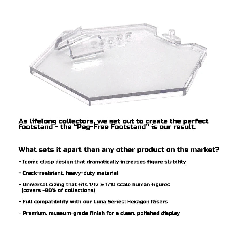 Introducing the Luna Series: Peg-Free Footstands – the ultimate solution for displaying your prized action figures. Designed to fit most 1:12 and 1:10 scale figures, these foot stands offer unparalleled versatility with multiple peg sizes!