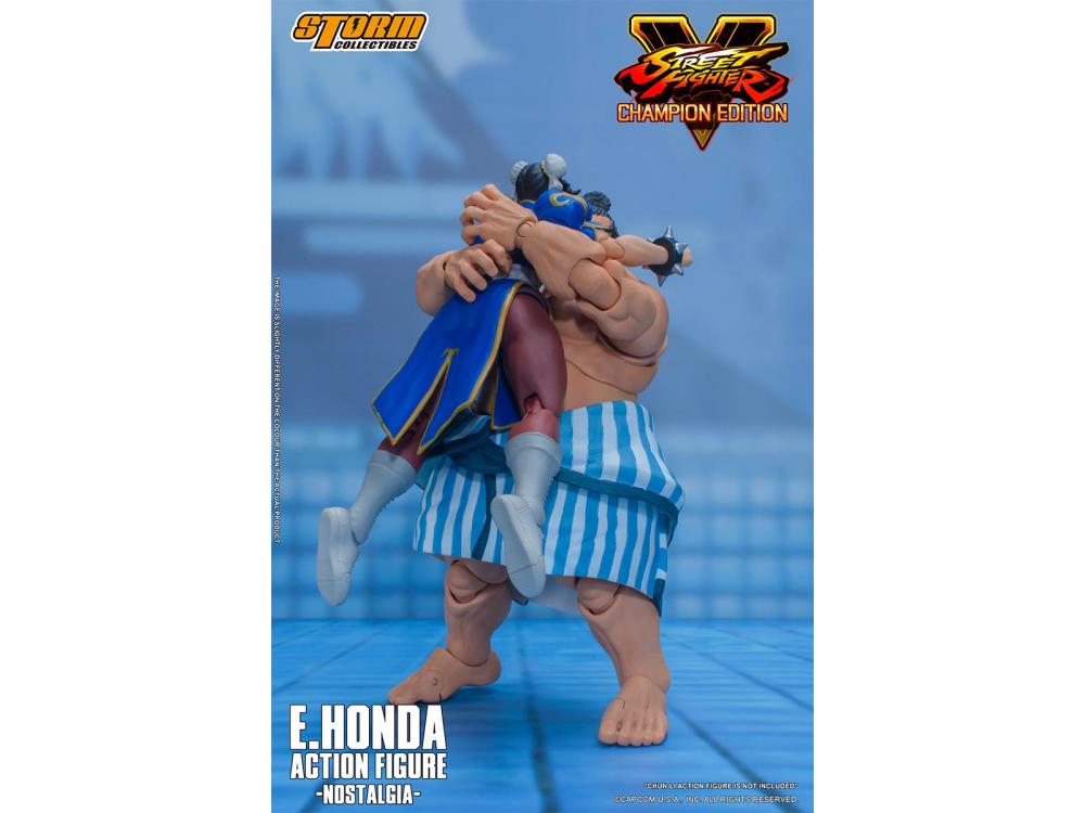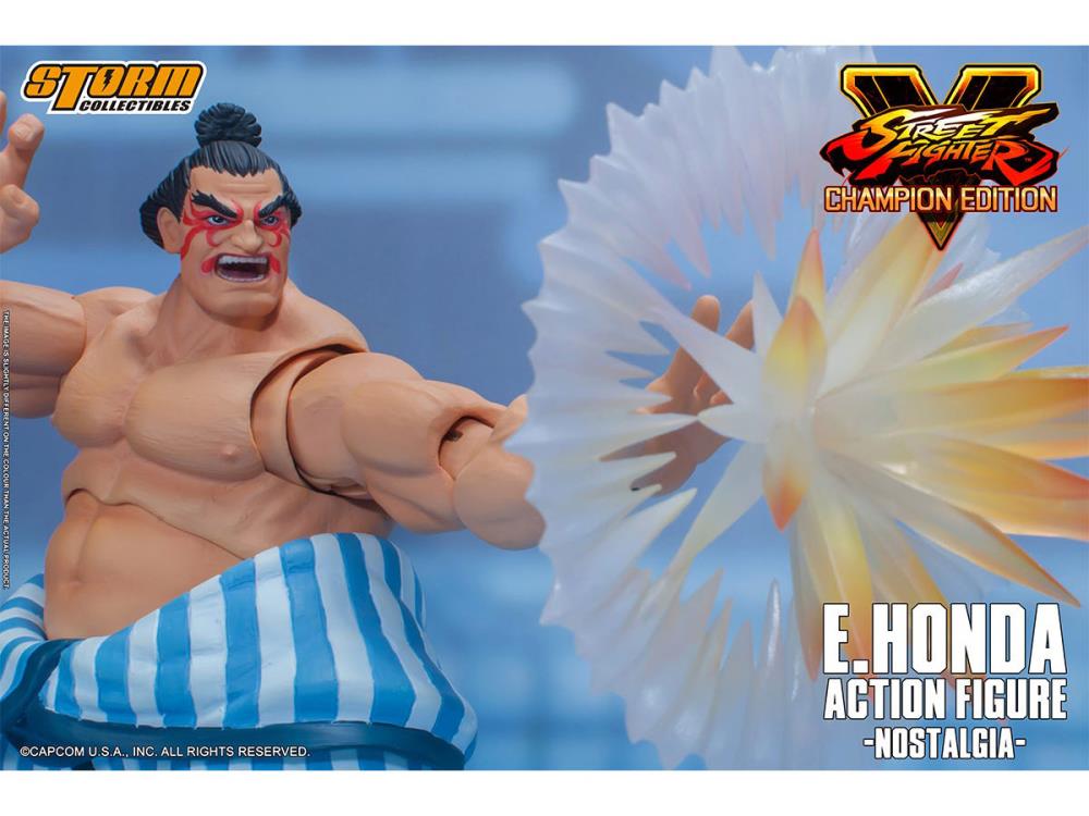 Edmond Honda, more commonly known as E. Honda, is a video game character from the Street Fighter series, first appearing in Street Fighter II. He is an honorable champion Sumo wrestler that values tradition. During the events of SFV, E. Honda is on a gourmet trip with Hakan and is searching for new disciples. This is E. Honda as seen in his Nostalgia Costume!